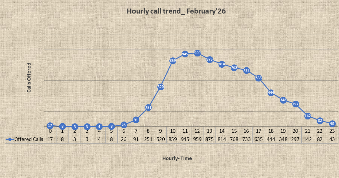 Our Hourly Call Trend may be useful for deciding the appropriate time to call our 24x7 customer care. Customers can call us during non-rush hours.